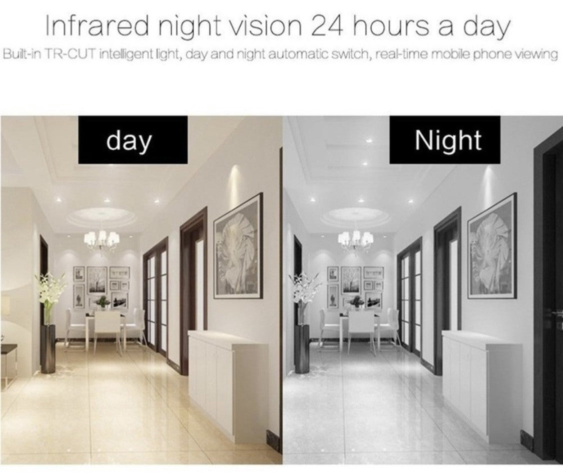 Dimensiones: 14x13x11cm Soporte Memoria: Hasta 64Gb (NO Incluida) Protocolo ONVIF: Si Sensor de imagen: CMOS Formato video: AVI Lente: 3,6 mm leds infrarrojos: 11 PCS Resolución: 1080P HD – 2Mpx Angulo de visión: 355° -120° PTZ: Horizontal 100,2 Vertical 74,7 Energía: DC 5V 2A WIFI: 20mts Interfaz de red: wi-fi/802.11/b/g Visión nocturna: 15mtsLa app es V380proLa cámara no son compatibles con 5g